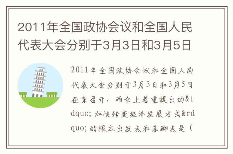 2011年全国政协会议和全国人民代表大会分别于3月3日和3月5日在京召开,两会上着重提出的“加快转变经济发展方式”的根本出发点和落脚点是()。