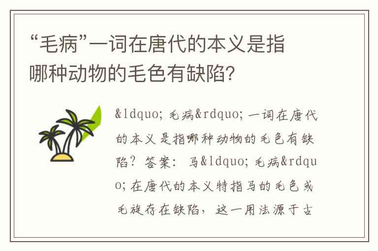从唐代相马师对毛色的挑剔,到今天我们说“找毛病”,这个词的变迁恰似一部微缩的文化史:最初指向马背上的一缕杂毛,最终成为评判万物缺陷的标尺。