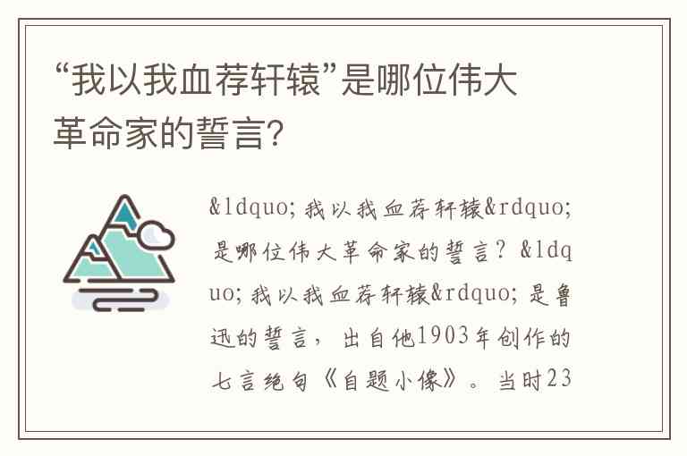 “我以我血荐轩辕”是哪位伟大革命家的誓言?