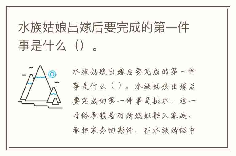 水族姑娘出嫁后要完成的第一件事是什么()。