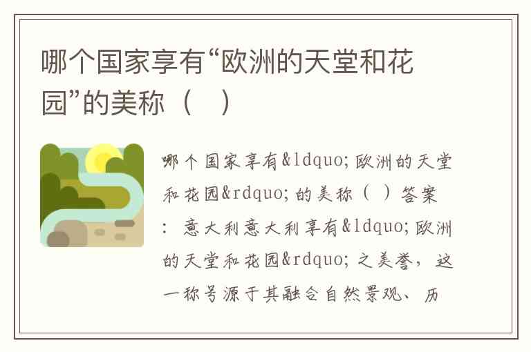 哪个国家享有“欧洲的天堂和花园”的美称( )