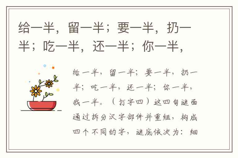 给一半,留一半;要一半,扔一半;吃一半,还一半;你一半,我一半。(打字四)