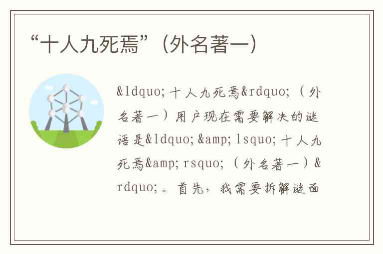 用户现在需要解决的谜语是“‘十人九死焉’(外名著一)”。首先,我需要拆解谜面,分析每个部分的含义。