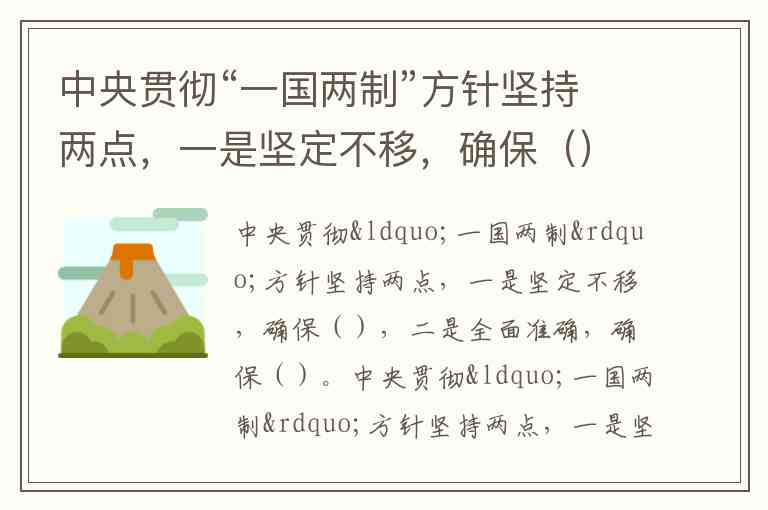 中央贯彻“一国两制”方针坚持两点,一是坚定不移,确保不会变、不动摇;二是全面准确,确保**“一国两制”在香港的实践不走样、不变形**。