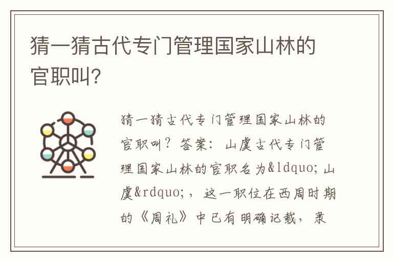 猜一猜古代专门管理国家山林的官职叫?