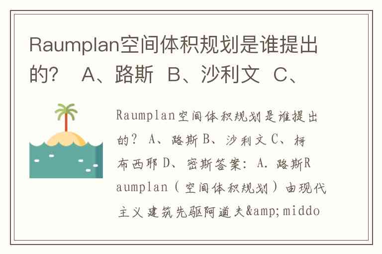 Raumplan空间体积规划是谁提出的? A、路斯 B、沙利文 C、柯布西耶 D、密斯