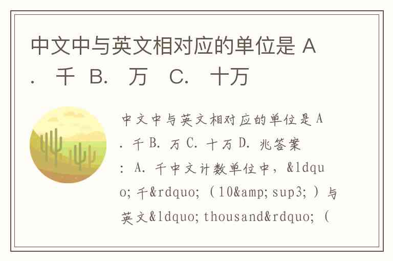 中文中与英文相对应的单位是 A. 千 B. 万 C. 十万 D. 兆