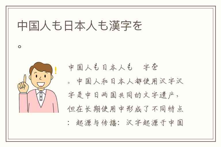 汉字是中日两国共同的文字遗产,但在长期使用中形成了不同特点: