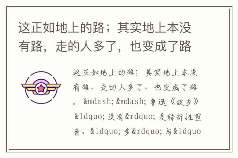 而“走的人多了”的“多”与“也变成了路”的“成”,构成递进性重音组合:“多”是量变积累(条件),“成”是质变结果(结论),二者是“过程→结果”的递进关系,并非“没有”的附属转折。