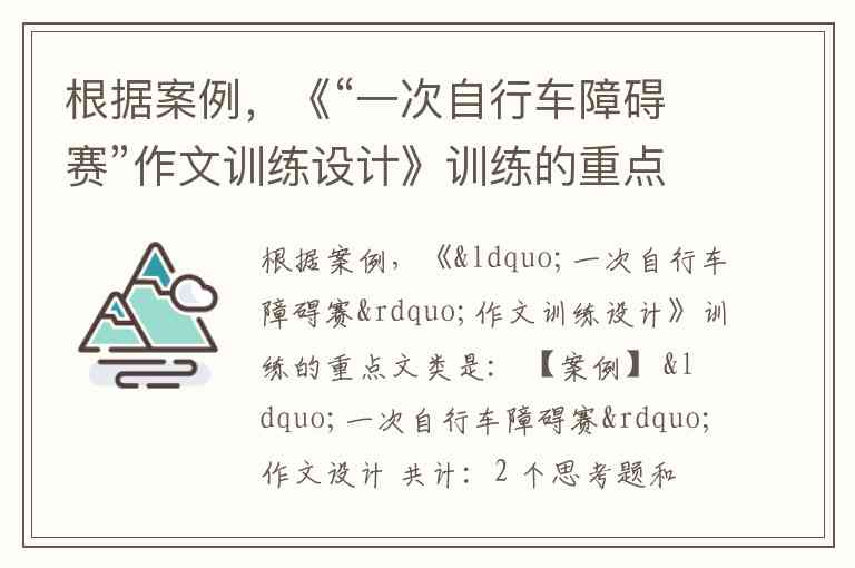 该作文训练设计的核心目标是培养面向真实生活场景的应用性写作能力,所有题目均围绕“自行车障碍赛”这一具体事件展开,要求完成具有实际功能的文本,而非文学性或议论性表达: