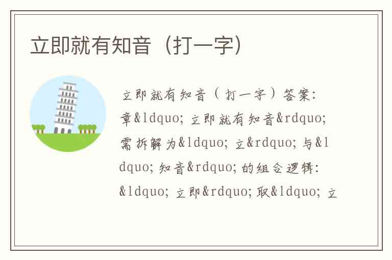 组合成“章”:“立”在上、“音”在下,恰好构成“章”字——“立”对应“立即”的“立”,“音”对应“知音”的“音”,二者叠加形成完整汉字。