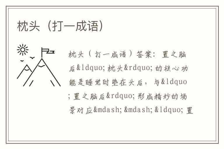 当成语的字面意义与物品功能相遇,便有了这道谜语的巧思——原来我们每天枕着的,竟是“置之脑后”这个成语最生动的注脚。