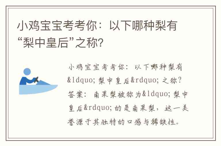小鸡宝宝考考你:以下哪种梨有“梨中皇后”之称?