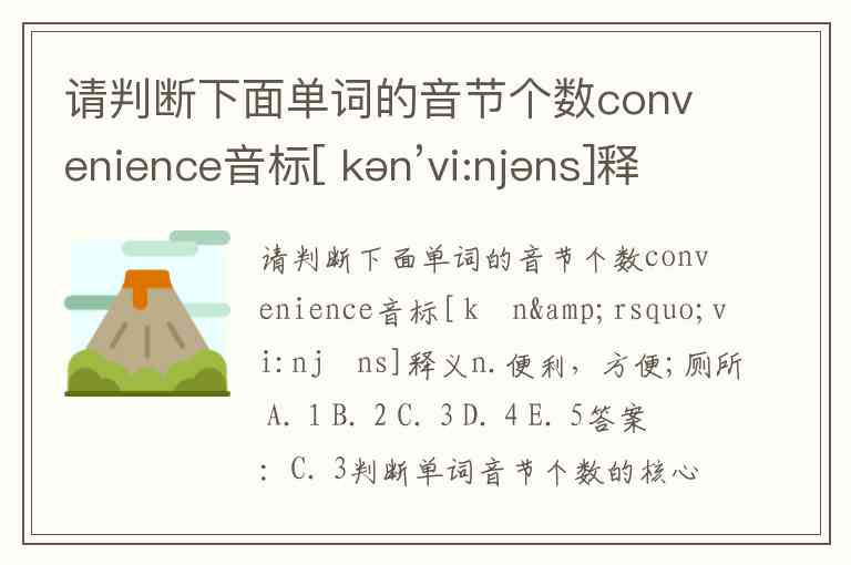 从 /kən/ 到 /viːn/ 再到 /jəns/,三个元音音素如同三个台阶,构成了“convenience”的发音骨架——英语音节的奥秘,正在于元音与辅音的精妙配比,正如便利生活的本质,是功能与体验的和谐统一。