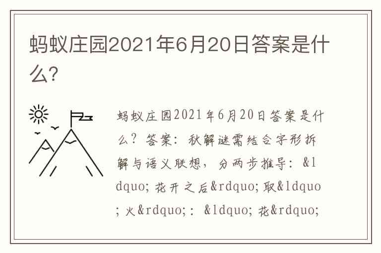 从“化”的笔画调整到“禾”的丰收意象,这个字谜用汉字结构勾勒出“秋日传香”的画面:当花朵落尽,庄稼成熟,便迎来“稻花香里说丰年”的金秋——原来“秋”字本身,就是自然与文字的诗意重逢。