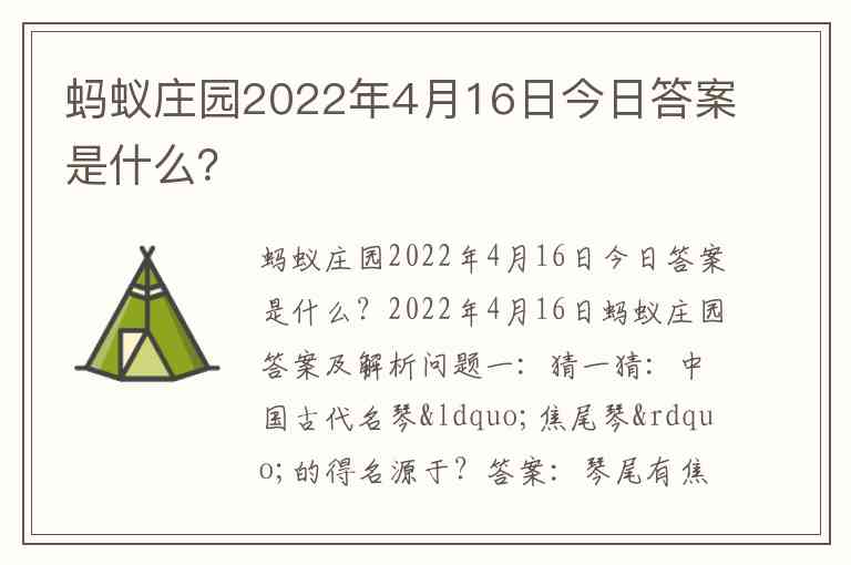 蚂蚁庄园2022年4月16日今日答案是什么?