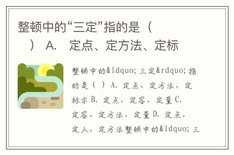 整顿中的“三定”指的是( ) A. 定点、定方法、定标示 B. 定点、定容、定量 C. 定容、定方法、定量 D. 定点、定人、定方法