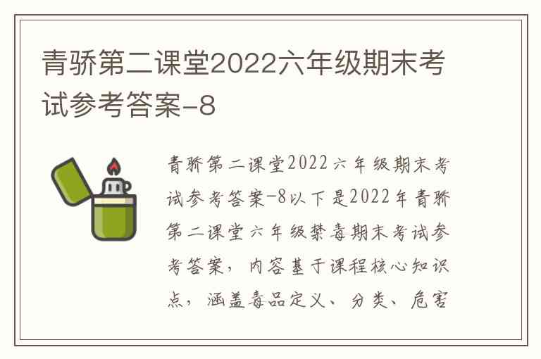 以下是2022年青骄第二课堂六年级禁毒期末考试参考答案,内容基于课程核心知识点,涵盖毒品定义、分类、危害及防范措施等关键内容: