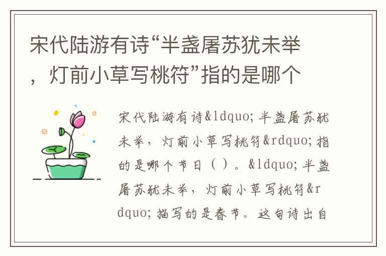 宋代陆游有诗“半盏屠苏犹未举,灯前小草写桃符”指的是哪个节日()。