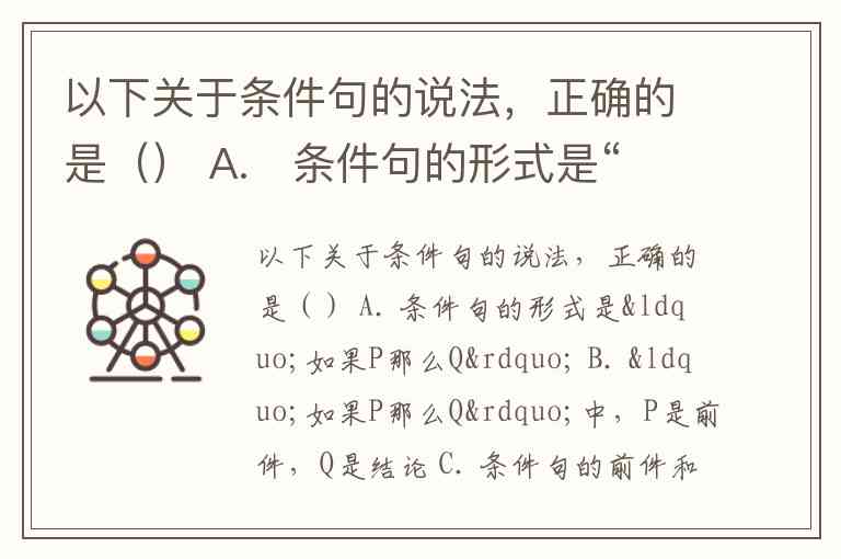 以下关于条件句的说法,正确的是() A. 条件句的形式是“如果P那么Q” B. “如果P那么Q”中,P是前件,Q是结论 C. 条件句的前件和后件都必须是真的 D. “如果P那么Q”的逆命题是“如果非P那么非Q”