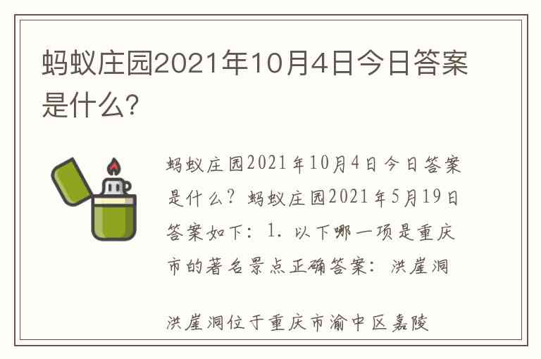 蚂蚁庄园2021年10月4日今日答案是什么?