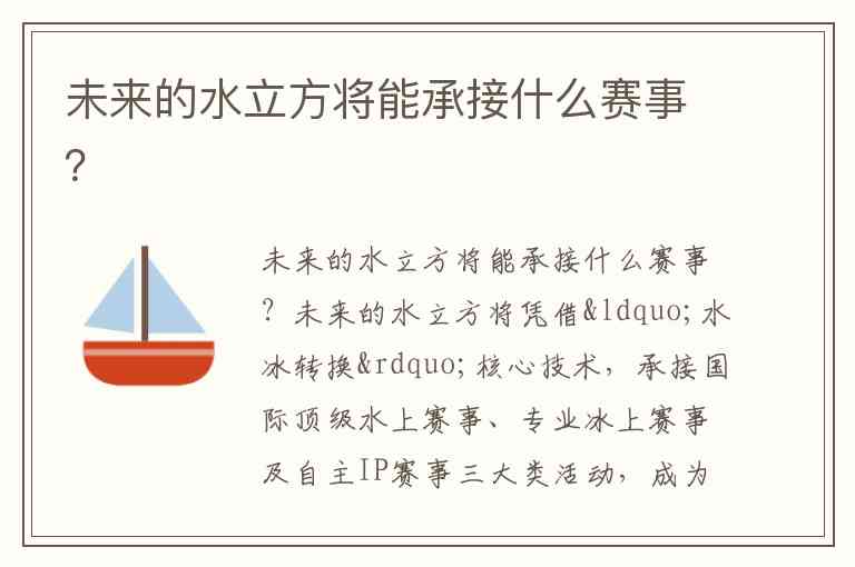 未来的水立方将能承接什么赛事?