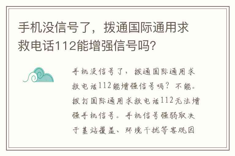 手机没信号了,拨通国际通用求救电话112能增强信号吗?