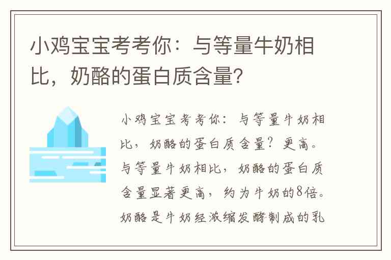 小鸡宝宝考考你:与等量牛奶相比,奶酪的蛋白质含量?