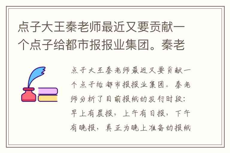 点子大王秦老师最近又要贡献一个点子给都市报报业集团。秦老师分析了目前报纸的发行时段:早上有晨报,上午有日报,下午有晚报,真正为晚上准备的报纸却没有。秦老师建议他们办一份《都市夜报》,打开这块市场。谁知都市报报业集团却没有采纳秦老师的建议。以下哪项如果为真,能够恰当地指出秦老师的分析中所存在的问题?