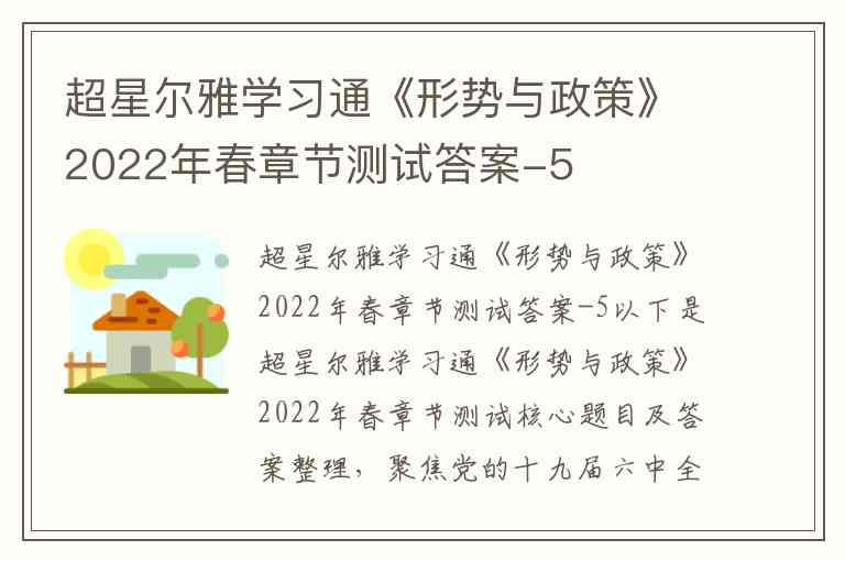 以下是超星尔雅学习通《形势与政策》2022年春章节测试核心题目及答案整理,聚焦党的十九届六中全会精神、“四个伟大成就”等重点内容,结合法律条文与历史背景解析,助力系统掌握课程要点: