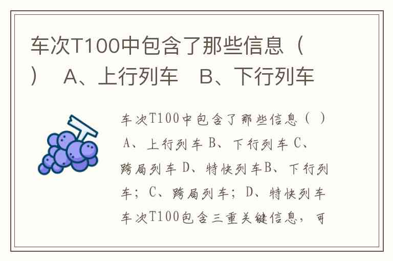 车次T100中包含了那些信息( ) A、上行列车 B、下行列车 C、跨局列车 D、特快列车