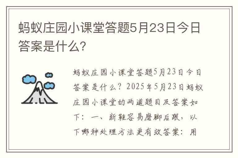 2025年5月23日蚂蚁庄园小课堂的两道题目及答案如下: