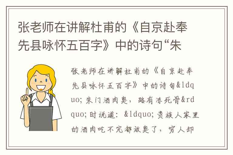 教学相长规律体现为师生在教学过程中相互启发、共同进步。当学生李某对“朱门酒肉臭”的传统解释提出质疑时,张老师没有否定或回避,而是承认自身“没注意到这一细节”,并将问题转化为共同探究的任务。这种“教师承认局限—引导学生查资料—共同解决问题”的过程,打破了“教师为绝对权威”的传统模式,符合教育规律中“教育系统整体特征”的动态互动性。