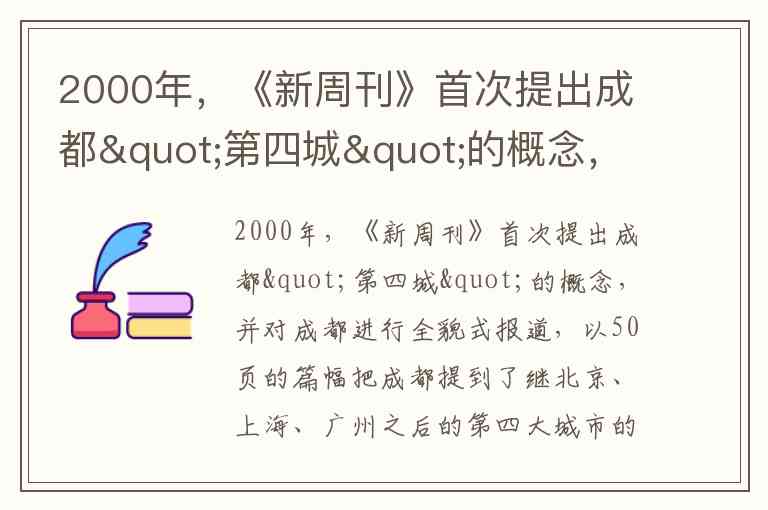 《新周刊》2000年提出的“第四城”概念,并非基于严格经济数据的城市排名,而是通过文化特质与生活方式的差异化定位,将成都从传统西部城市形象中突围。其核心策略包括: