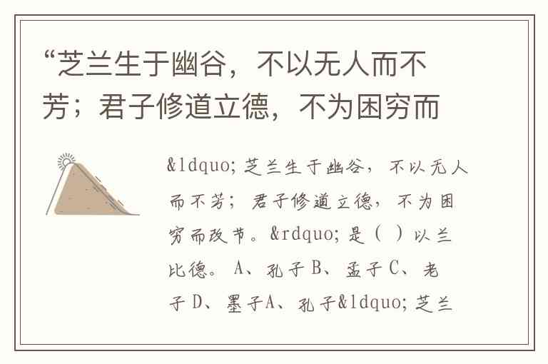 “芝兰生于幽谷,不以无人而不芳;君子修道立德,不为困穷而改节。”是( )以兰比德。 A、孔子 B、孟子 C、老子 D、墨子