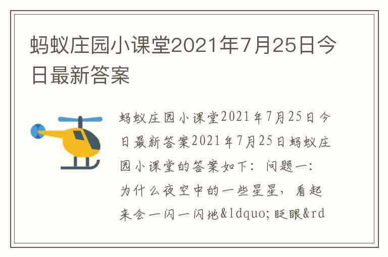 蚂蚁庄园小课堂2021年7月25日今日最新答案