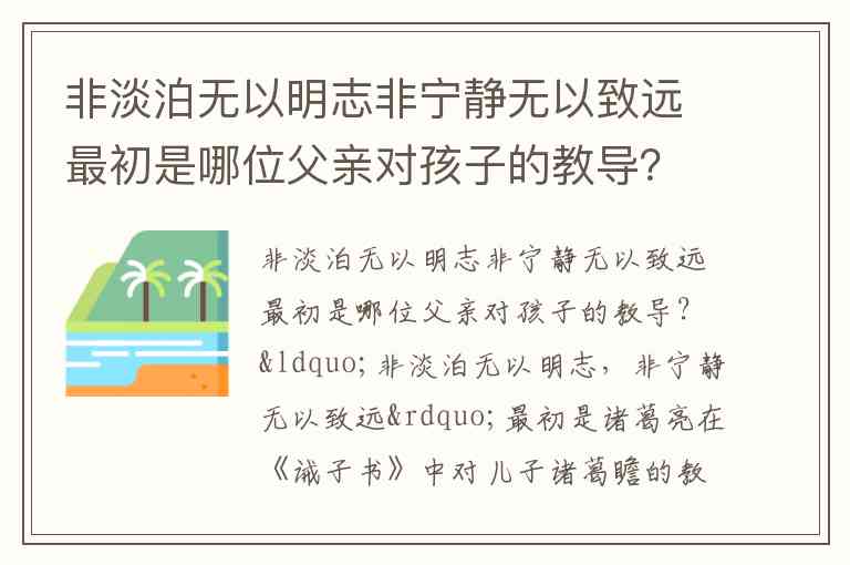 “非淡泊无以明志,非宁静无以致远”最初是诸葛亮在《诫子书》中对儿子诸葛瞻的教导。