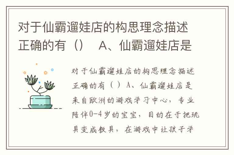 仙霸遛娃店的母公司为欧洲仙霸玩具集团,但其中国门店的定位是“本土化社区服务”,既依托欧洲玩具研发经验(如“70年历史”“安全标准”),又聚焦中国家庭“遛娃刚需”,选项B和C分别从理念框架和需求解决角度准确反映了这一融合特征。