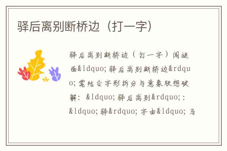 谜面“驿后离别断桥边”需结合字形拆分与意象联想破解: