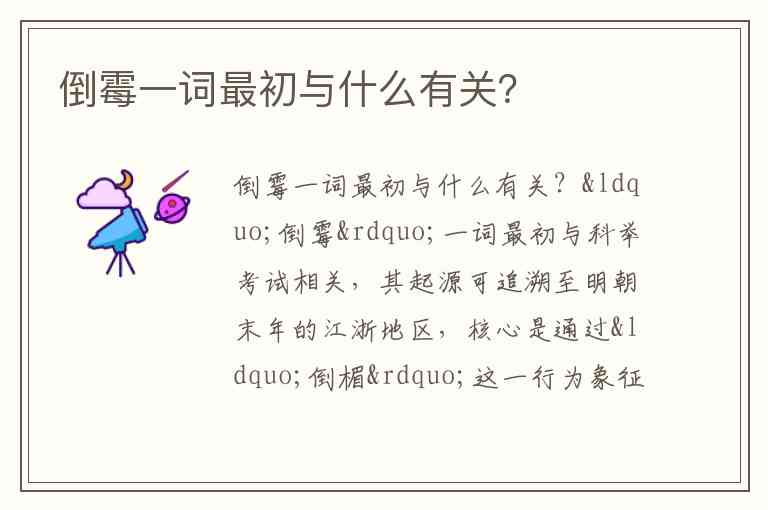 “倒霉”一词最初与科举考试相关,其起源可追溯至明朝末年的江浙地区,核心是通过“倒楣”这一行为象征考试失利,后经谐音演变成为通用词汇。
