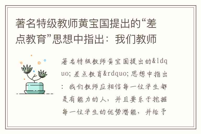 答案:这位老师的做法符合差点教育理念,通过尊重个性、激活参与,让每个学生在原有基础上进步,这正是差点教育“尊重差异、发展潜能”的核心要义。