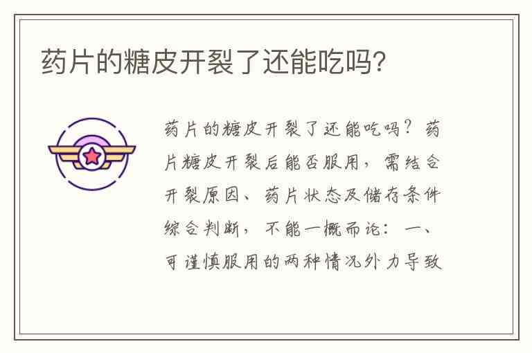 药片的糖皮开裂了还能吃吗?