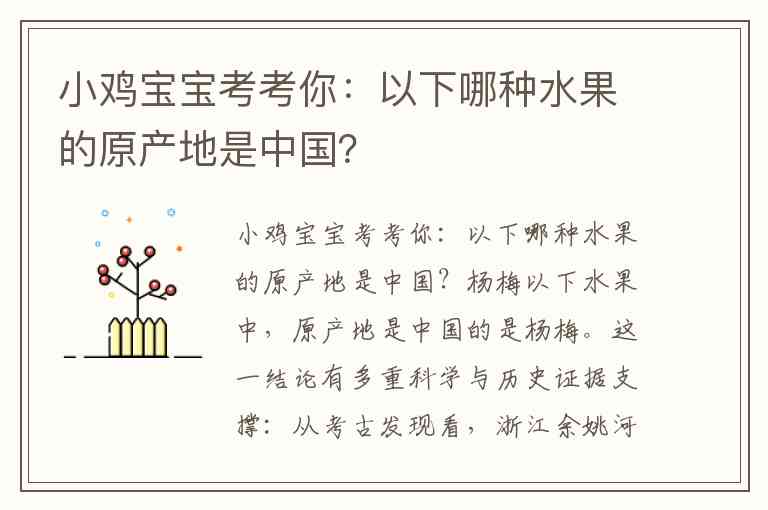 小鸡宝宝考考你:以下哪种水果的原产地是中国?