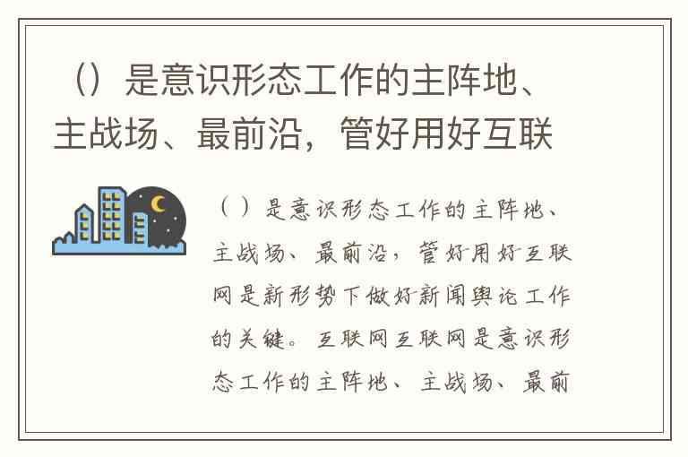 ()是意识形态工作的主阵地、主战场、最前沿,管好用好互联网是新形势下做好新闻舆论工作的关键。