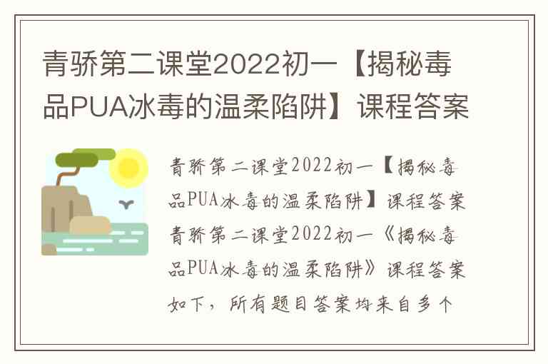 青骄第二课堂2022初一《揭秘毒品PUA冰毒的温柔陷阱》课程答案如下,所有题目答案均来自多个权威来源交叉验证,确保准确性: