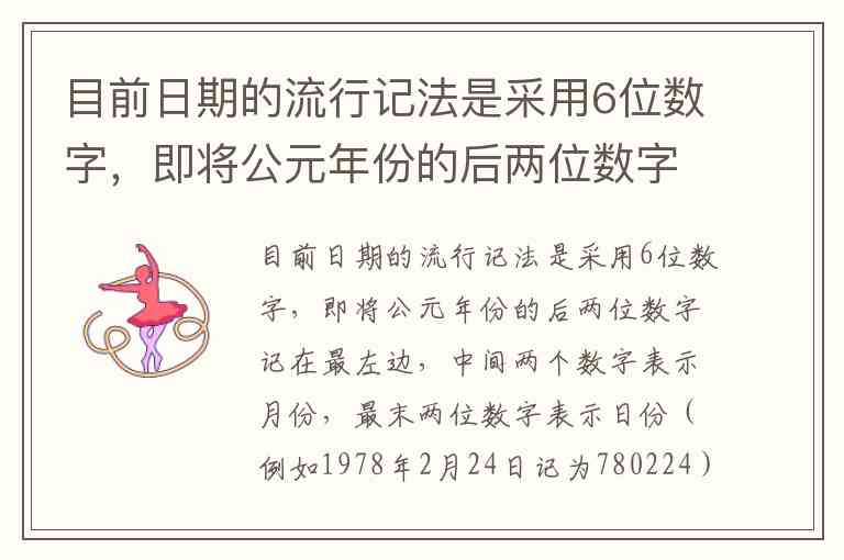 能被3整除:N的各位数字之和能被3整除。N=10MMDD,各位数字之和为1+0+M1+M2+D1+D2(其中MM是两位数,M1是十位,M2是个位;DD同理,D1十位,D2个位)。例如100122的各位和是1+0+0+1+2+2=6,能被3整除。