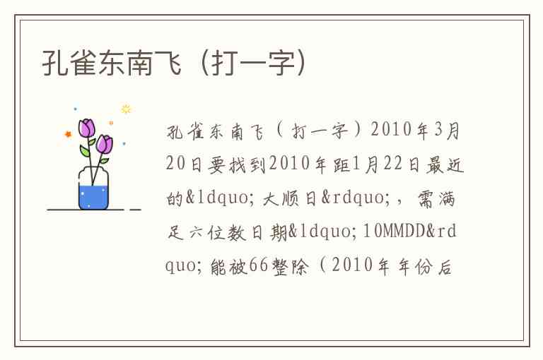 孔雀东南飞(打一字)