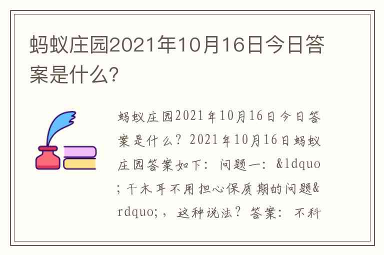 蚂蚁庄园2021年10月16日今日答案是什么?