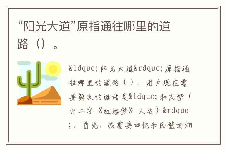 “阳光大道”原指通往哪里的道路()。