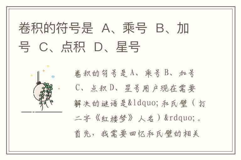 卷积的符号是 A、乘号 B、加号 C、点积 D、星号